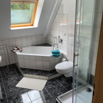 Wohnungen verfügen über ein geräumiges Tageslichtbad mit Badewanne, separater Dusche und WC. In der ca. 100 qm großen Ferienwohnung befindet sich ebenfalls ein Tageslichtbad mit